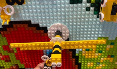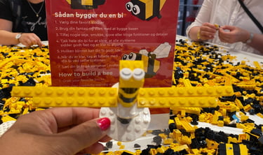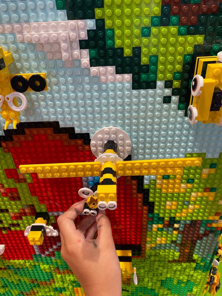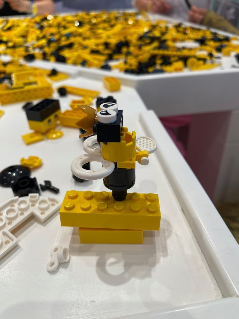 Here, we joined the Bee Workshop, building our own LEGO bees from trays of yellow, black, and clear bricks. The kids loved designing their own versions — adding wings, stripes, and funny little faces.