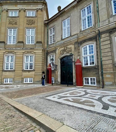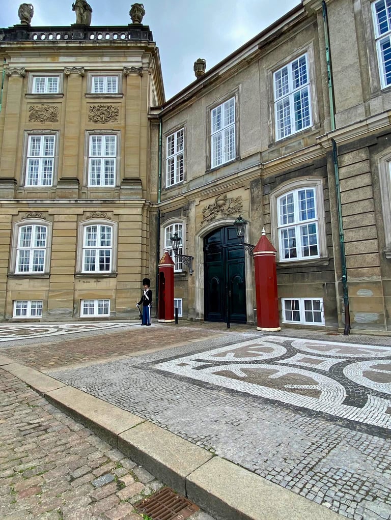 Next, we walked to Amalienborg Palace, home of the Danish royal family. We arrived just in time to see the Changing of the Guard ceremony — a unique experience that feels like stepping into a fairy tale.