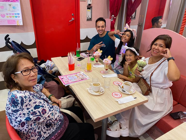 We even tried a maid café, which was fun for the whole family — something totally new for us.