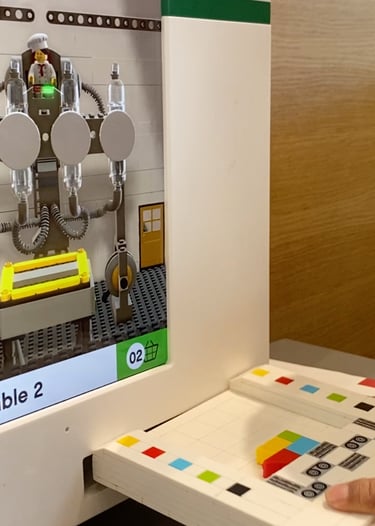 Once your meal is built, you place the LEGO plate into the scanner. The kitchen receives your order digitally.