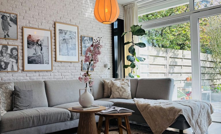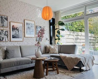 This living room is my calm retreat — but you can recreate the look in your own home with a few thoughtful pieces. Whether it’s a textured rug, an accent chair, or a simple modern sofa, these touches bring warmth and serenity to any space.